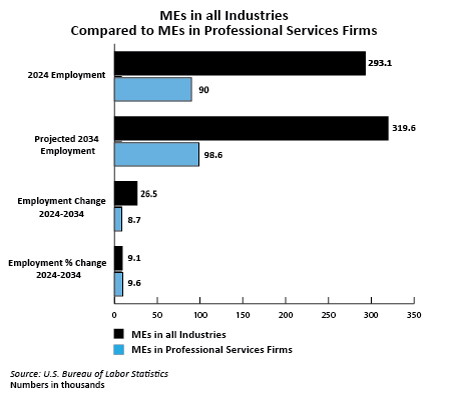 There are slightly more than 293,000 MEs working in the United States. Twenty percent of these professionals work in architectural and engineering (AE) services.