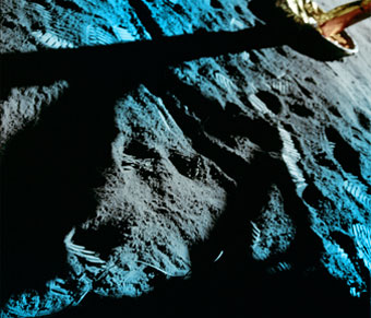 The first picture taken after the Apollo moon landing.